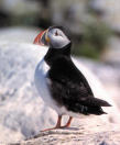 | Quel oiseau marin noir et blanc au gros bec multicolore vit en colonie dans les regions temperees proche de l'Atlantique nord ?